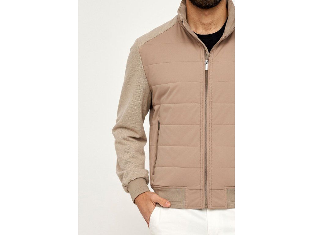 Pánská přechodová béžová bunda Villaro. Celopropínací bunda se stojáčkem. Na hrudi a zádech je odlišná látak než na rukávech. Má postranní kapsy na zip. Má vnitřní kapsu na zip na levé straně.
