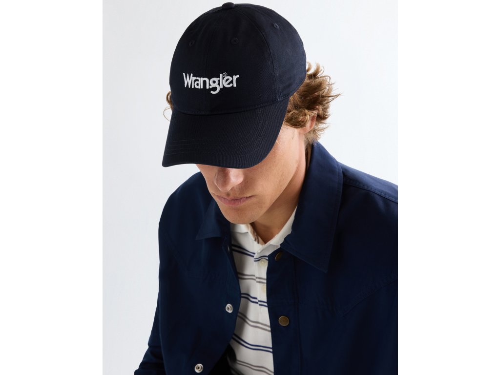 Tmavě modrá kšiltovka Wrangler s vyšitým logem na přední straně. Na zadní straně je možné upravit velikost. Vyrobena ze 100 % bavlny.