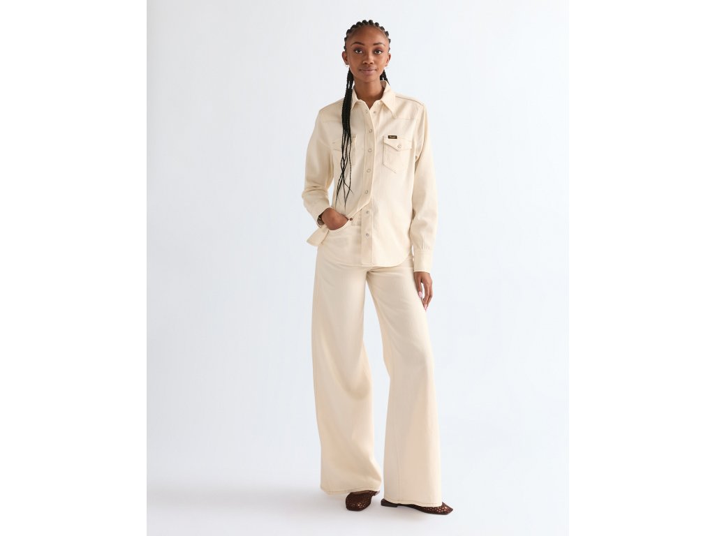 Bílé džíny ve volném střihu. Mají vyšší sed, volné rozšiřující se nohavice, zapínání na zip. Mají klasických pět kapses. Vynikají moderním střihem, bílou barvou a velmi příjemným materiálem. Na zadní pravé kapse je nášivka. Vyrobeny s příměsí 1 % elastanu v odlehčeném LIGHTWEIGHT stylu.