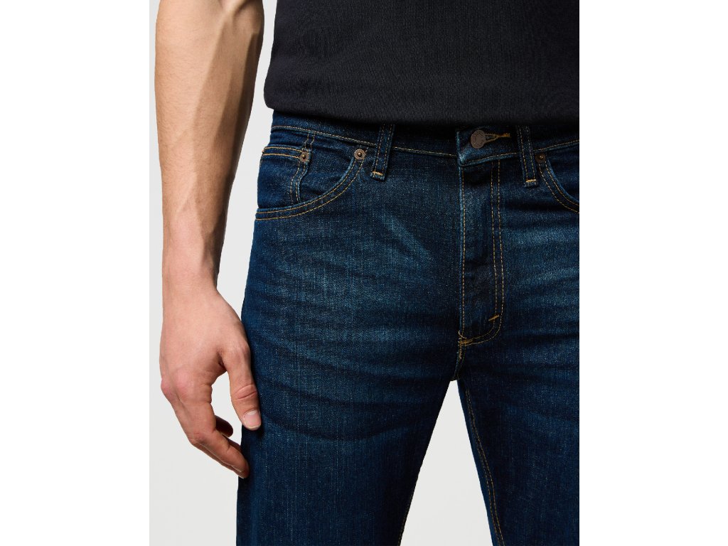 Temně modré nešoupané džíny v klasickém rovném střihu se zapínáním na zip. S příměsí 1 % elastanu zajišťující pohodlné nošení. Využijete je k tričku i košili. Ušity v klasickém střihu Regular fit.