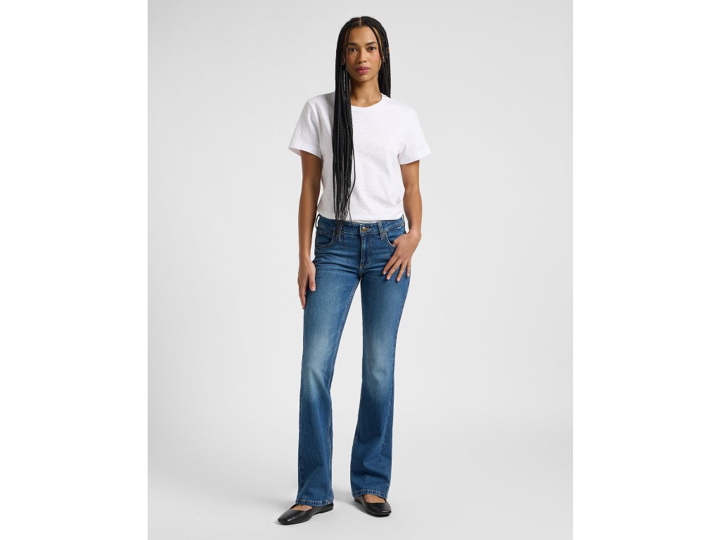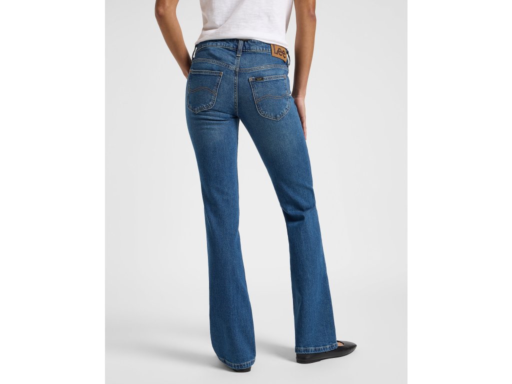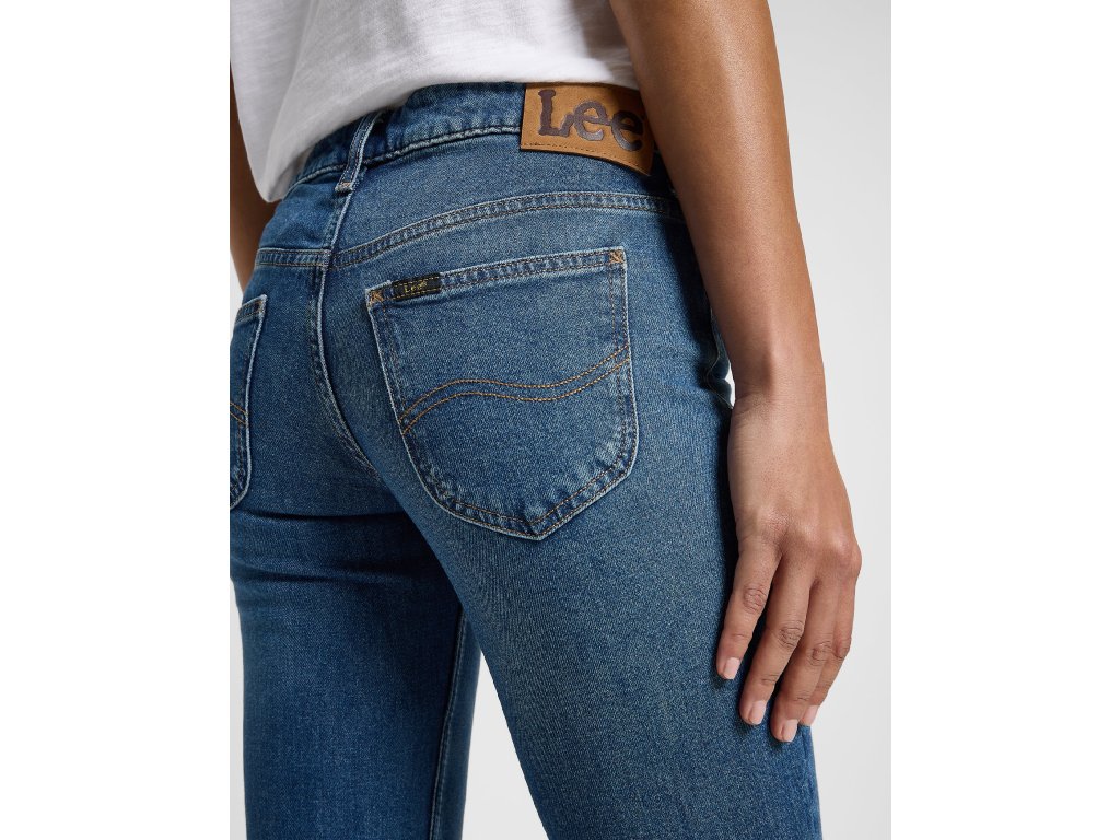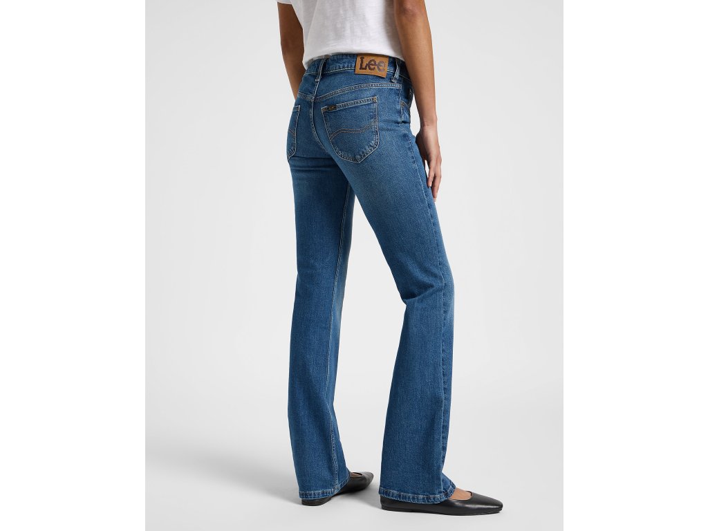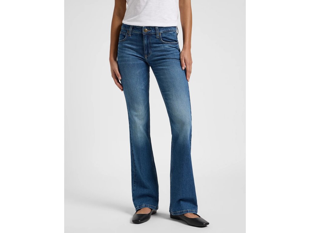 Středně modré džíny LEE s nižším sedem do zvonu. Zapíní na zip. Od kolen se rozšiřují. V oblasti boků a stehen mají klasický střih. Vyrobeno s příměsí 2 % elastanu. Vynikají perfektním moderním střihem, modrou jemně vyšoupanou barvou, materiálem a zpracováním.