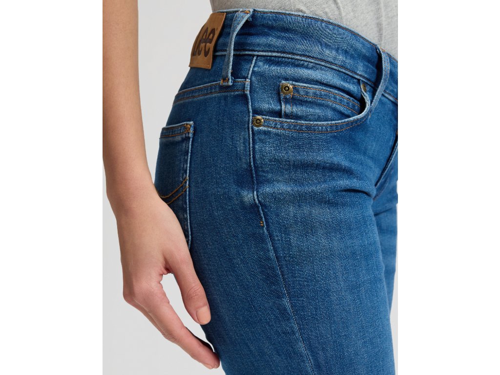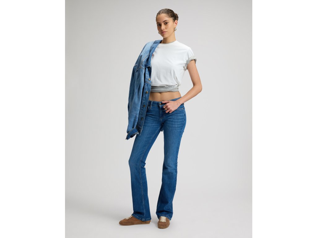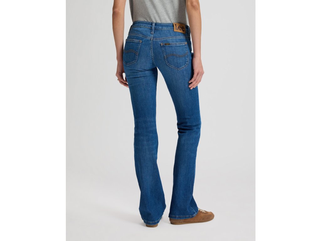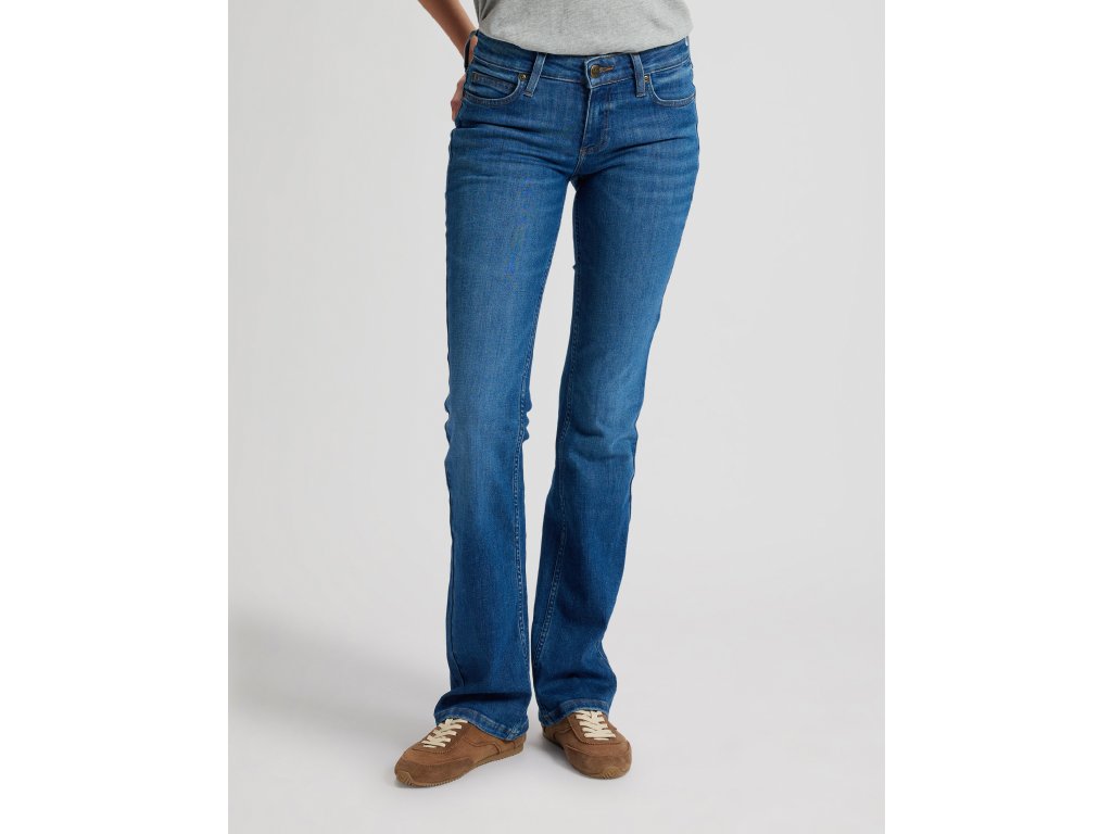 Středně modré džíny LEE s nižším sedem do zvonu. Zapíní na zip. Od kolen se rozšiřují. V oblasti boků a stehen mají klasický střih. Vyrobeno s příměsí 2 % elastanu. Vynikají perfektním moderním střihem, modrou jemně vyšoupanou barvou, materiálem a zpracováním.