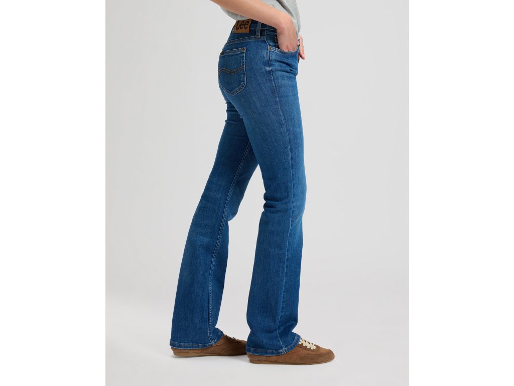Středně modré džíny LEE s nižším sedem do zvonu. Zapíní na zip. Od kolen se rozšiřují. V oblasti boků a stehen mají klasický střih. Vyrobeno s příměsí 2 % elastanu. Vynikají perfektním moderním střihem, modrou jemně vyšoupanou barvou, materiálem a zpracováním. Vyrobeny z více pružné odlehčené džínoviny Lightweight.