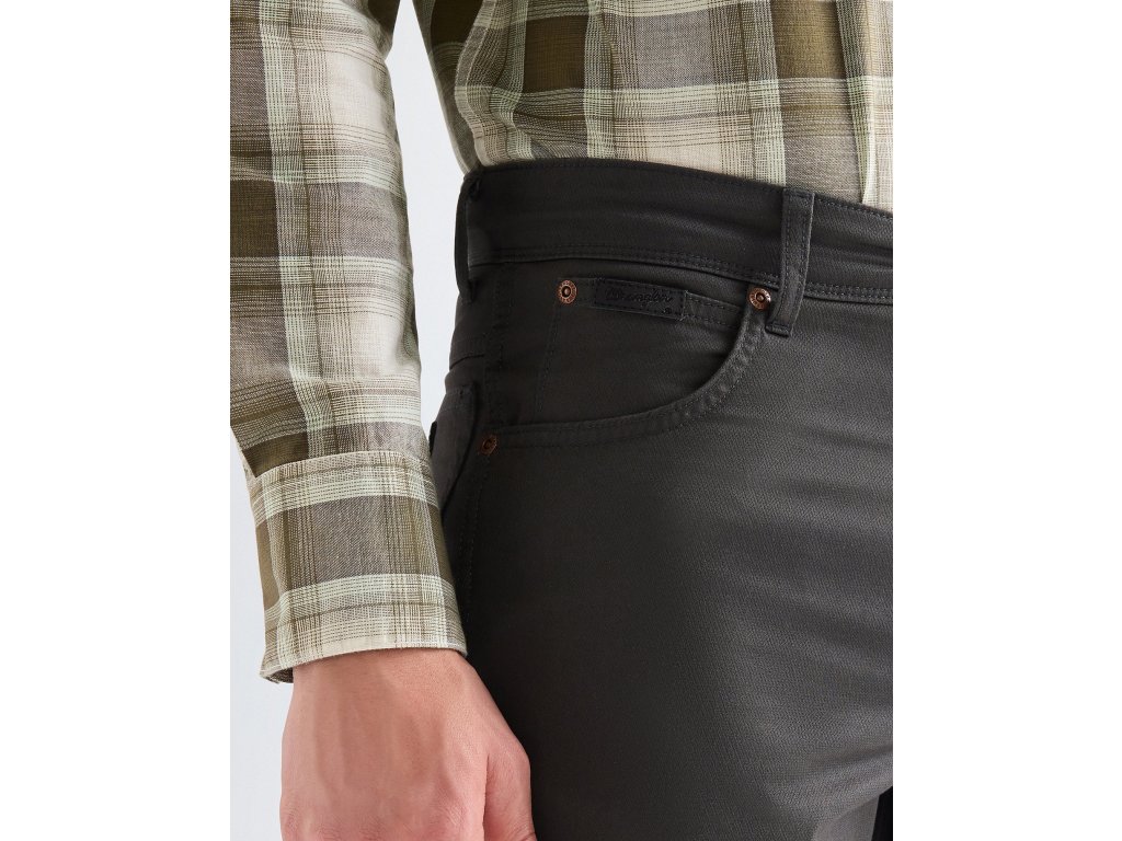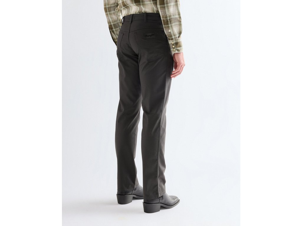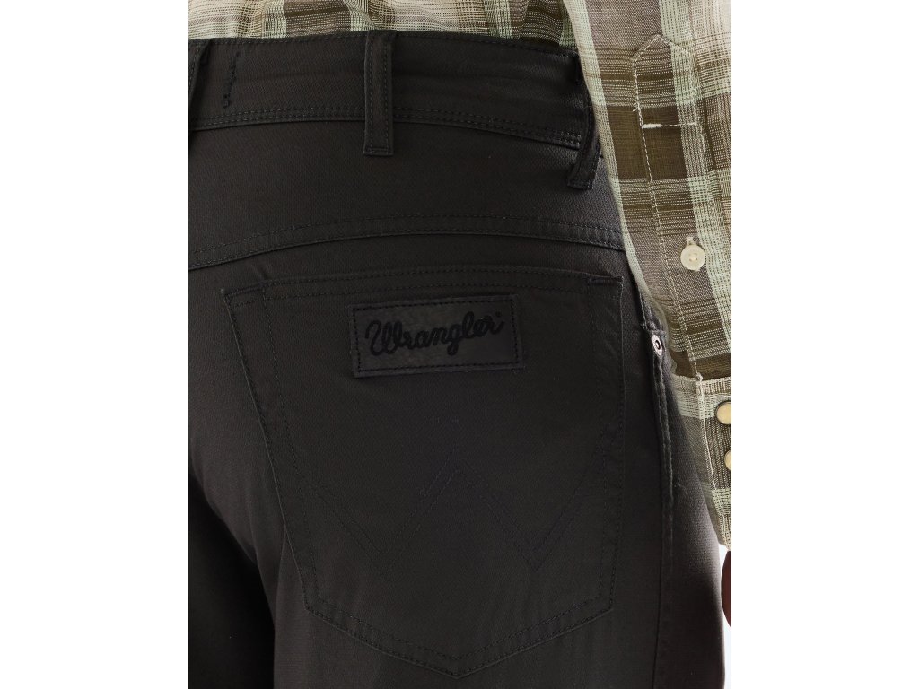 Kalhoty černé barvě v rovném střihu a se zapínáním na zip. Zapínání na zip s kovovým knoflíkem, na kterém je vyryto logo WRANGLER. Zadní kapsy mají typické dvojité prošití ve tvaru W. Na pravé zadní kapse je umístěn kožený štítek s logem WRANGLER. Vhodné jak do práce, tak na běžné nošení. V kombinaci s košilí či polem jednoznačně vyniknete.