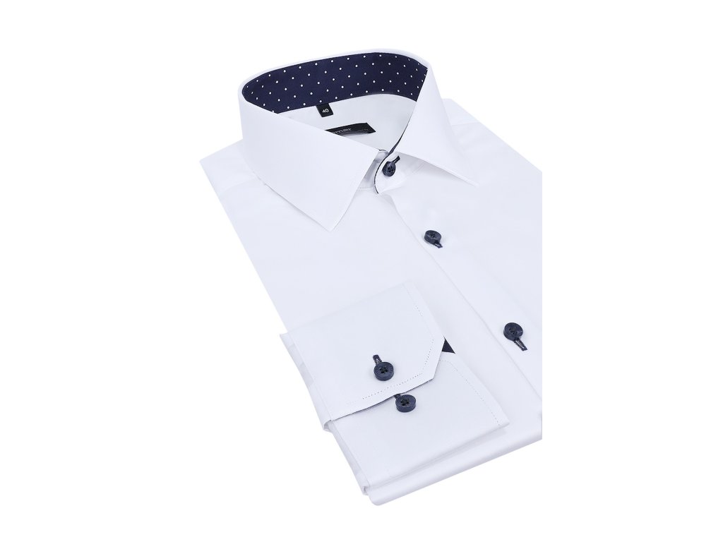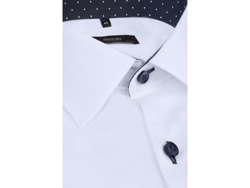 Společenská košile s dlouhým rukávem od značky MMER. Košile v bílé barvě s barevnými detaily. Košile bez kapsičky v mírně projmutém střihu Regular Fit. Ušita ze 100 % bavlny.