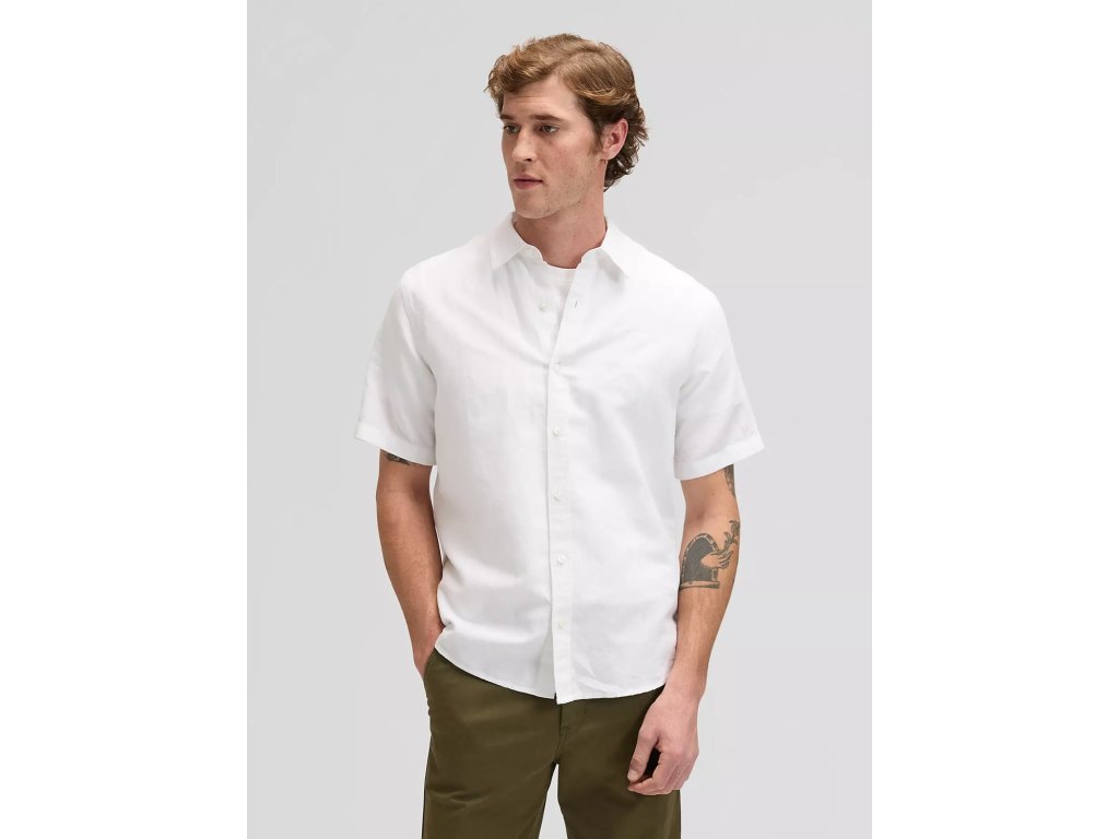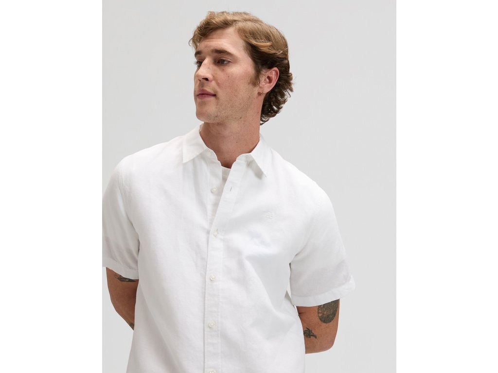 Pánská lněná košile krátký rukáv LEE 112376562 SS LEE SHIRT Bright White