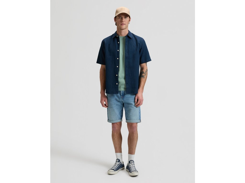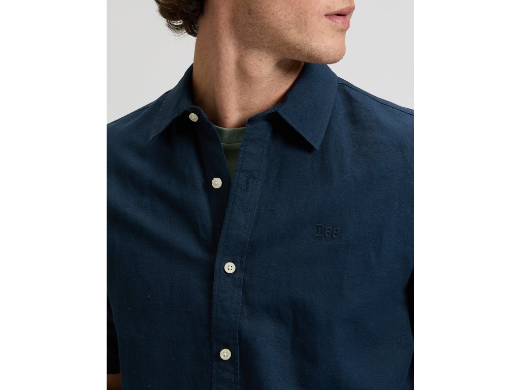 Pánská lněná košile krátký rukáv LEE 112376564 SS LEE SHIRT Rivet Navy