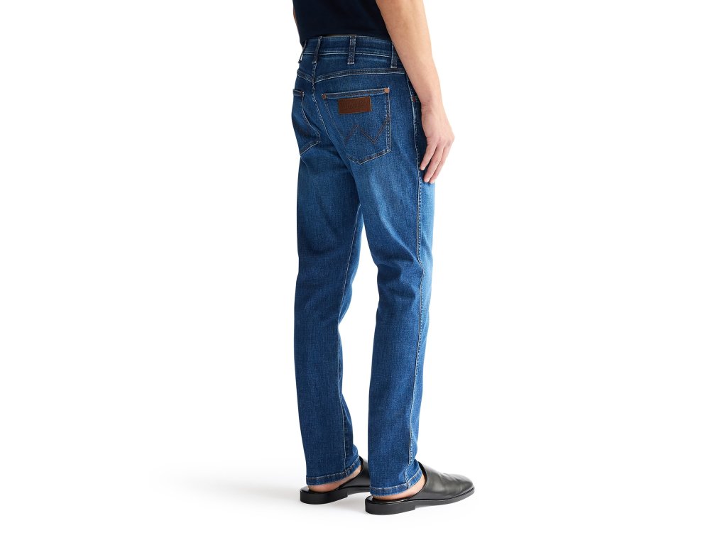 Středně modré pánské džíny Wrangler v užším střihu LARSTON a se zapínáním na zip. Džíny v oblíbené provedení Dandelion Summer. Vyrobeny s příměsí 2 % elastanu.
