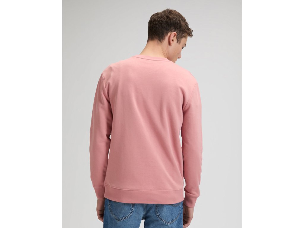 Světle růžová mikina přes hlavu s kulatým výstřihem. Na levé straně hrudi je logo LEE. Ve výstřihu je ozdobný prvek do písmene V. Vyrobena ze 100 % bavlny. Ušita v klasickém střihu REGULAR FIT.