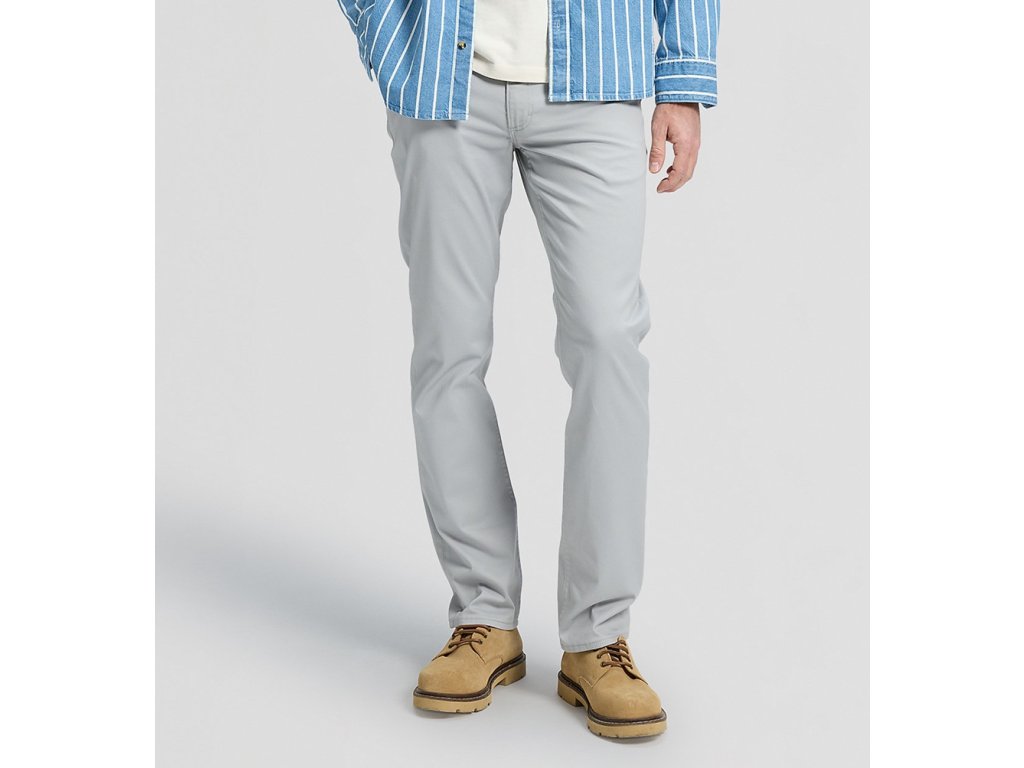 Světle šedé kalhoty ve střihu Daren Zip Fly. Mají středně vysoký sed, klasický rovný střih a zapínání na zip. S příměsí 2 % elastanu.