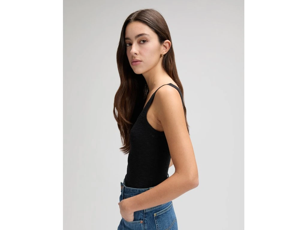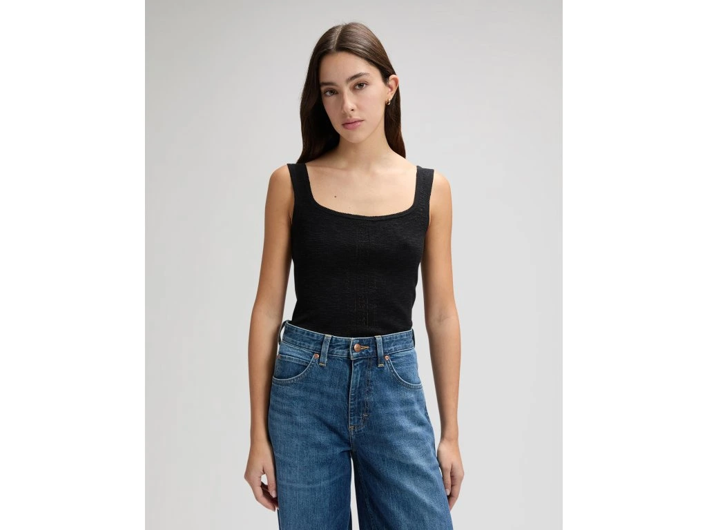 Dámské černé tílko Lee. Ve výstřihu a v prostřední části je vzorované. Povedený kousek, který využijete samostantě v teplém počasí nebo můžeme využít přes košii či tričko. Ušito v užším střihu Slim Fit.